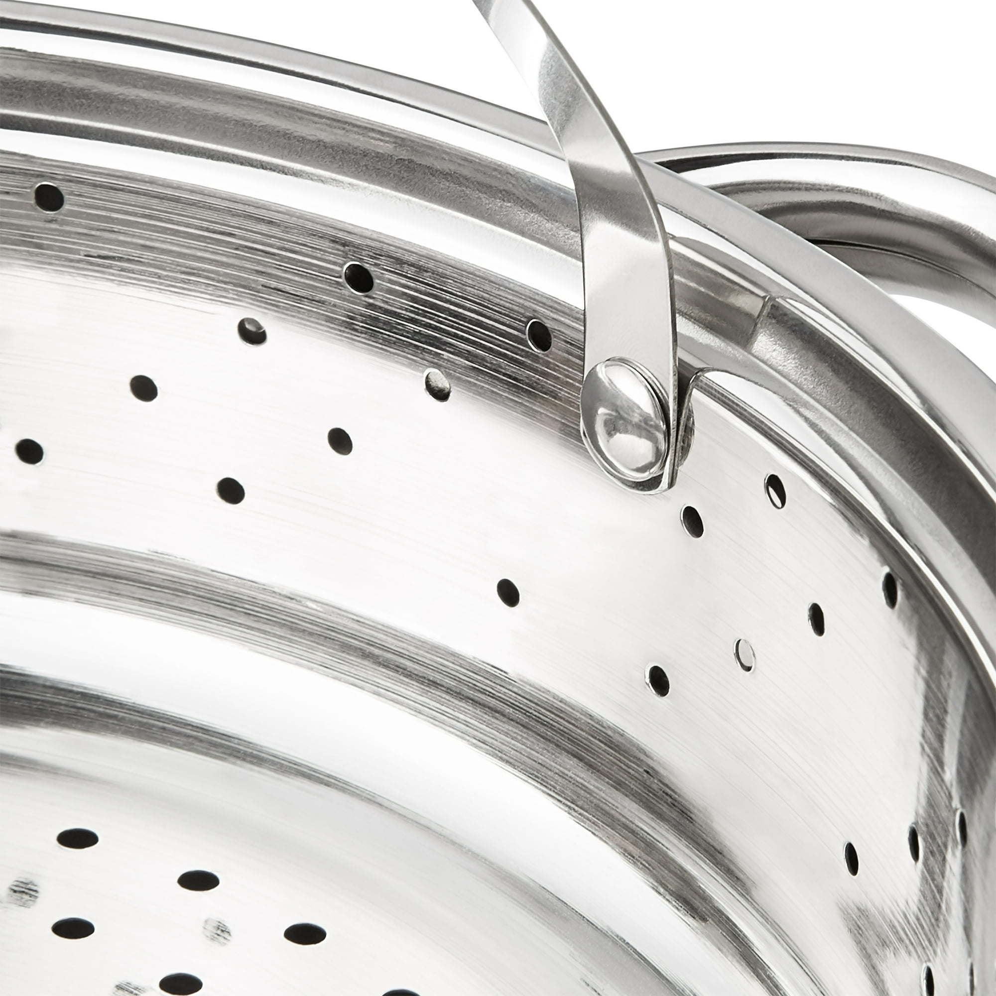 Prepare amazing sauces, pastas, potatoes, corn-on-the-cob, and more with the ample Stainless Steel 8-Quart Multi-Cooker with Glass Lid. This large multi-cooker measures 9.76" L x 9.76" W x 12.60" H and is perfect for any occasion. The 4-piece set includes a stock pot, colander, steamer basket, and glass lid. Designed with stylish stainless steel and glass, it's sure to coordinate with your existing cookware. This sturdy multi-cooker features stay-cool handles, a heat- and shatter-resistant glass lid, durable, stainless steel construction, and a tri-ply base for quick and even cooking. Ideal for get-togethers, backyard barbecues, and other special events, 4-Piece Stainless Steel 8-Quart Multi-Cooker with Glass Lid is a must-have cookware item in any kitchen.
