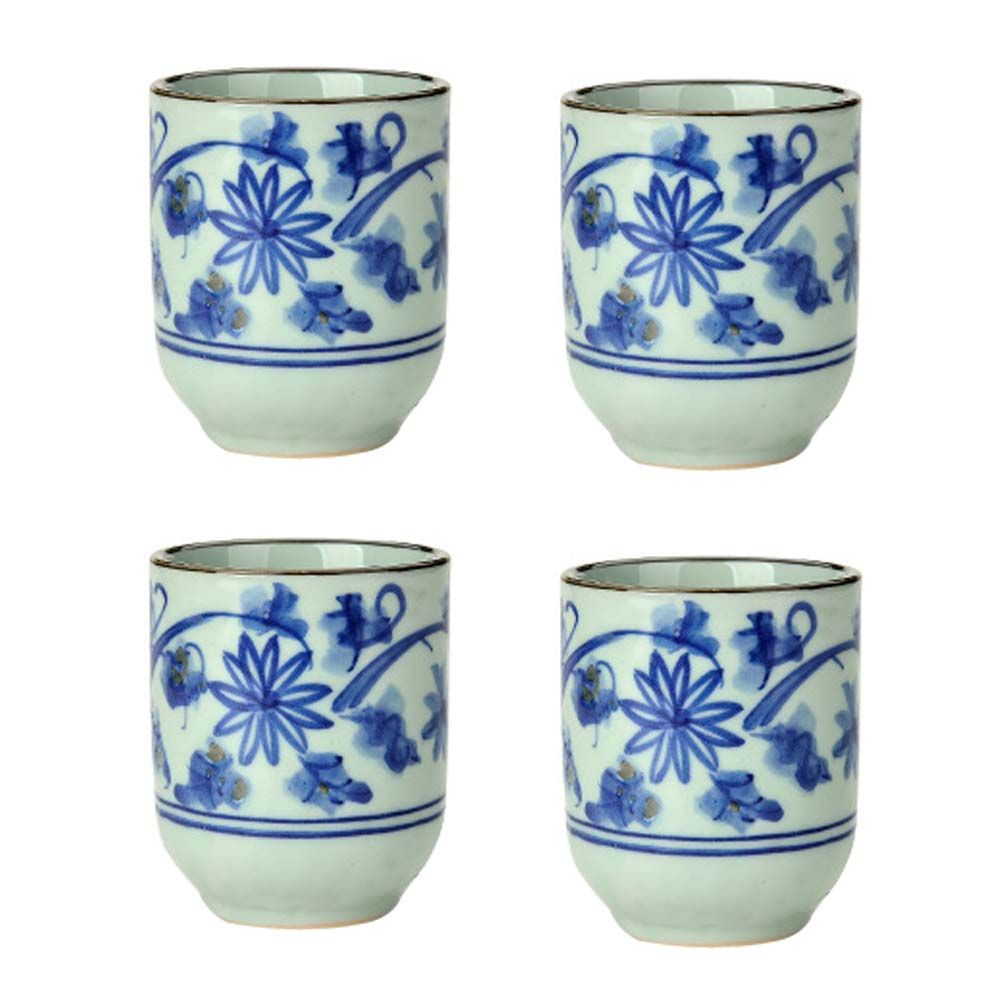 4Pcs Japanese Style Blue Flower Ceramic Teacups Small Straight Wine Glass 150ML 4Pcs Japanese Style Blue Flower Ceramic Teacups Small Straight Wine Glass 150ML