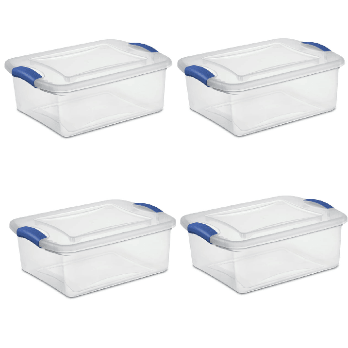 (4 pack) , 15 Quart Clear Storage Bin, Latch Box Storage Container, with Clear Lid, Blue (4 pack) , 15 Quart Clear Storage Bin, Latch Box Storage Container, with Clear Lid, Blue (4 pack) , 15 Quart Clear Storage Bin, Latch Box Storage Container, with Clear Lid, Blue
