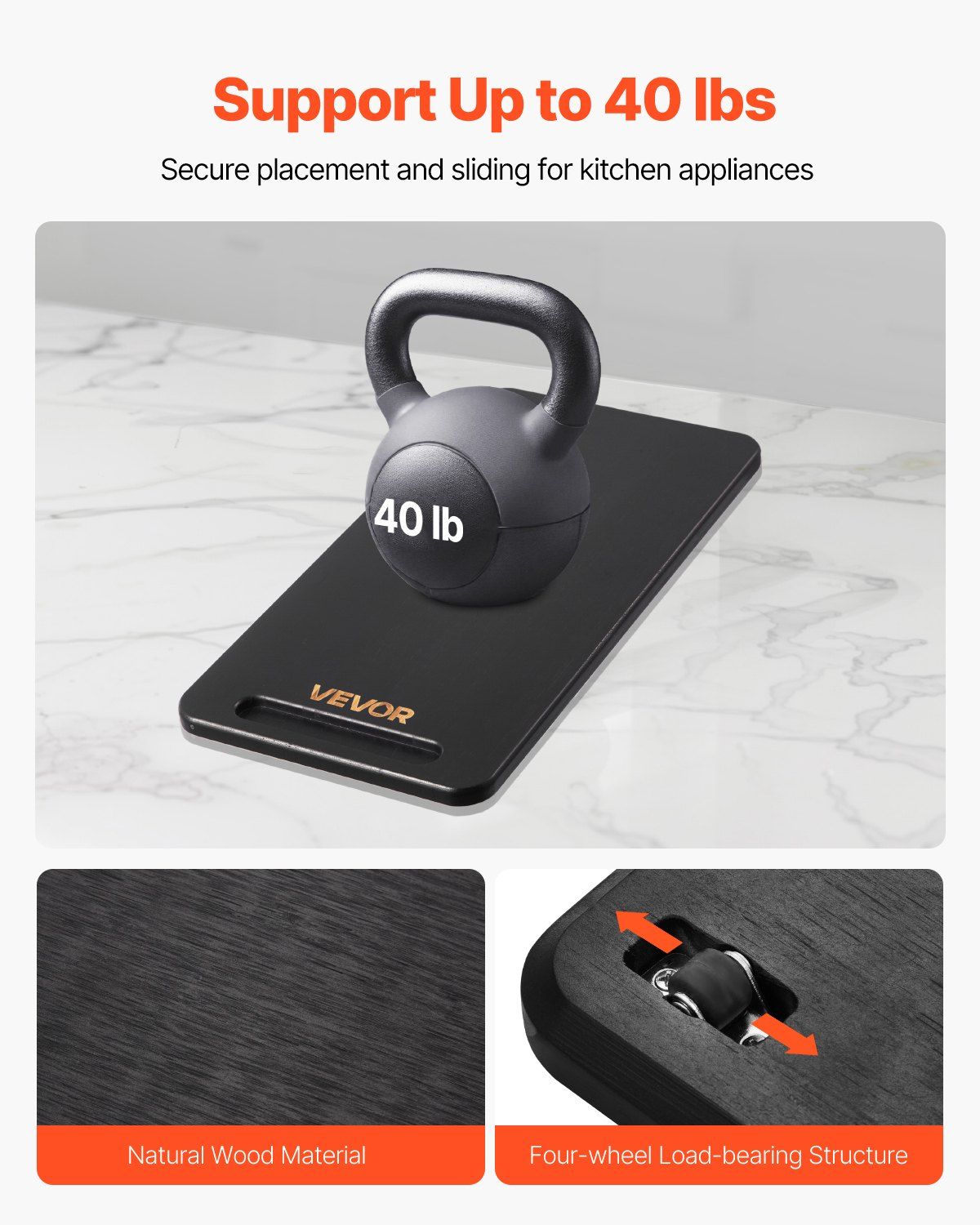 Made of durable material with a 0.7-inch thick design, this appliance slider supports up to 40 lbs. It's ideal for heavy kitchen appliances, making adjustments easy without wobbling.