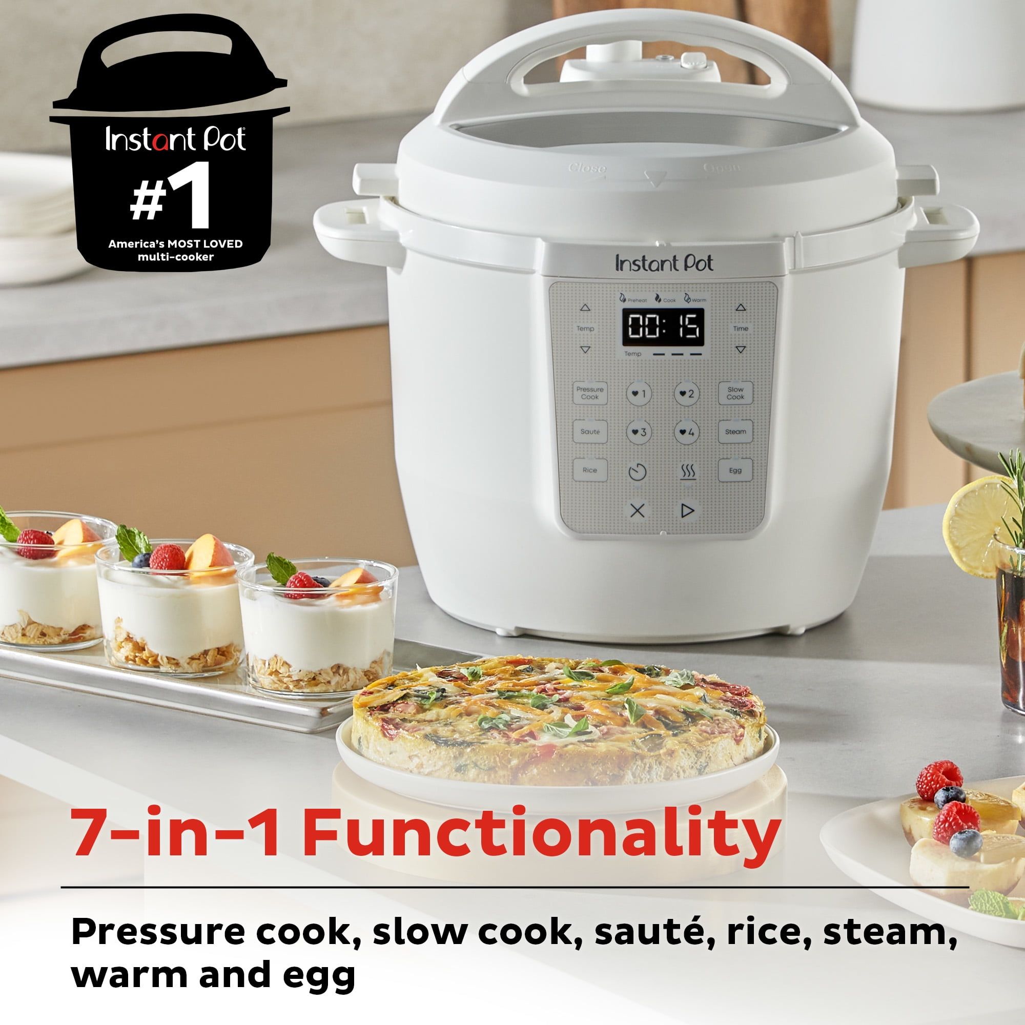 Combining sleek design with powerful functionality, it features 7 cooking functions and 4 customizable presets to save your favorite settings. The non-stick, ceramic-coated aluminum pot ensures even cooking and easy cleanup, while the slim design fits perfectly on your countertop without sacrificing capacity. Big enough to serve six or leave plenty for leftovers, it’s perfect for families or meal preppers. The Easy-Release steam switch makes venting hassle-free.